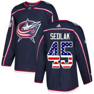 Pánské NHL Columbus Blue Jackets dresy 45 Lukas Sedlak Authentic Námořnická modrá Adidas USA Flag Fashion