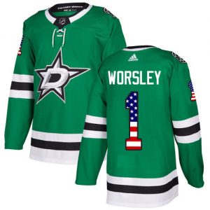Pánské NHL Dallas Stars dresy 1 Gump Worsley Authentic Zelená Adidas USA Flag Fashion