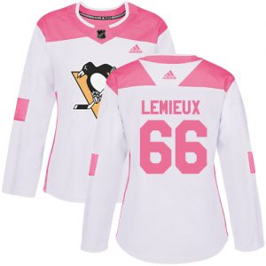 Dámské NHL Pittsburgh Penguins dresy 66 Mario Lemieux Authentic Bílý Růžový Adidas Fashion