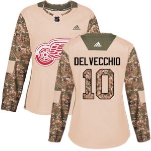 Dámské NHL Detroit Red Wings dresy 10 Alex Delvecchio Authentic Camo Adidas Veterans Day Practice