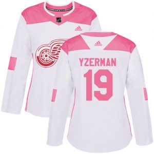 Dámské NHL Detroit Red Wings dresy 19 Steve Yzerman Authentic Bílý Růžový Adidas Fashion