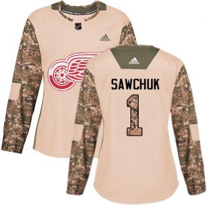 Dámské NHL Detroit Red Wings dresy 1 Terry Sawchuk Authentic Camo Adidas Veterans Day Practice