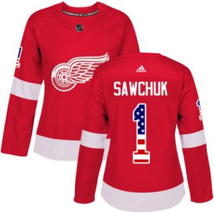 Dámské NHL Detroit Red Wings dresy 1 Terry Sawchuk Authentic Červené Adidas USA Flag Fashion
