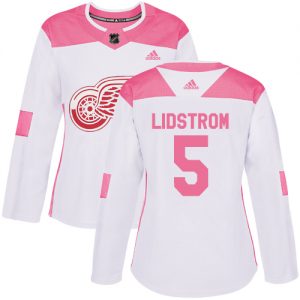 Dámské NHL Detroit Red Wings dresy 5 Nicklas Lidstrom Authentic Bílý Růžový Adidas Fashion