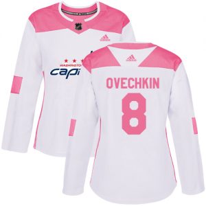 Dámské NHL Washington Capitals dresy 8 Alex Ovechkin Authentic Bílý Růžový Adidas Fashion