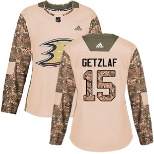 Dámské NHL Anaheim Ducks dresy 15 Ryan Getzlaf Authentic Camo Adidas Veterans Day Practice