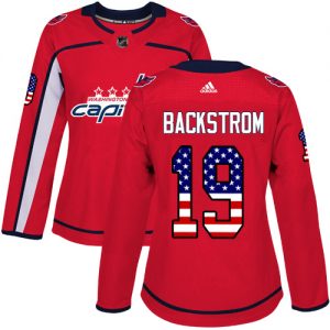 Dámské NHL Washington Capitals dresy 19 Nicklas Backstrom Authentic Červené Adidas USA Flag Fashion