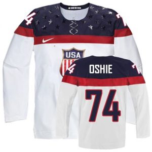 Olympic T. J. Oshie Authentic Bílý Team USA dresy 74 Domácí 2014 hokejové dresy