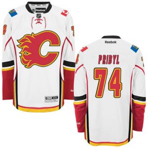 Dětské NHL Calgary Flames dresy Daniel Pribyl 74 Authentic Bílý Reebok Venkovní hokejové dresy