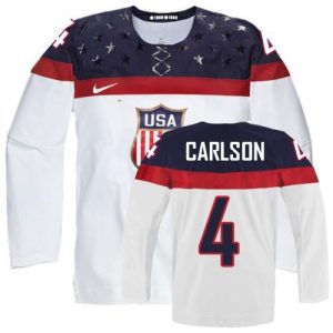 Olympic John Carlson Authentic Bílý Team USA dresy 4 Domácí 2014 hokejové dresy
