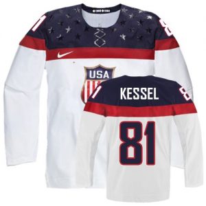 Olympic Phil Kessel Authentic Bílý Team USA dresy 81 Domácí 2014 hokejové dresy