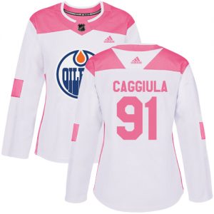 Dámské NHL Edmonton Oilers dresy 91 Drake Caggiula Authentic Bílý Růžový Adidas Fashion