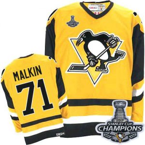 Pánské NHL Pittsburgh Penguins dresy Evgeni Malkin 71 Authentic Throwback Zlato CCM Stanley Cup Champions