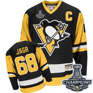 Pánské NHL Pittsburgh Penguins dresy Jaromir Jagr 68 Authentic Throwback Černá CCM Stanley Cup Champions