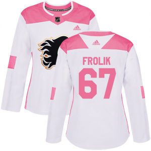 Dámské NHL Calgary Flames dresy 67 Michael Frolik Authentic Bílý Růžový Adidas Fashion