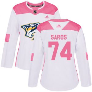 Dámské NHL Nashville Predators dresy 74 Juuse Saros Authentic Bílý Růžový Adidas Fashion
