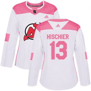 Dámské NHL New Jersey Devils dresy 13 Nico Hischier Authentic Bílý Růžový Adidas Fashion