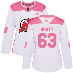 Dámské NHL New Jersey Devils dresy 63 Jesper Bratt Authentic Bílý Růžový Adidas Fashion