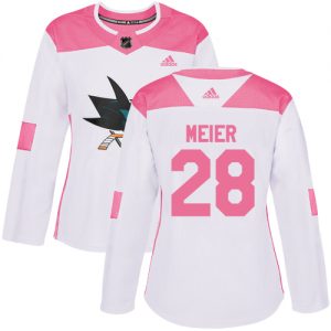 Dámské NHL San Jose Sharks dresy 28 Timo Meier Authentic Bílý Růžový Adidas Fashion