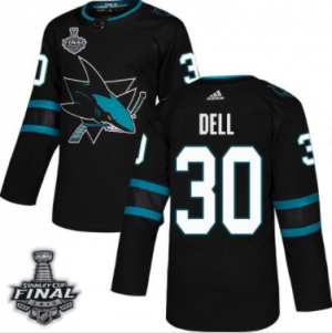 Pánské NHL Sharks 30 Aaron Dell Černá 2019 Stanley Cup Final Stitched
