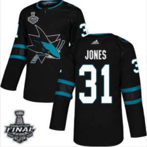 Pánské NHL Sharks 31 Martin Jones Černá 2019 Stanley Cup Final Stitched