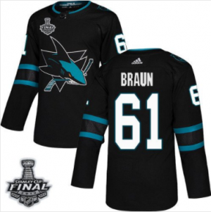 Pánské NHL Sharks 61 Justin Braun Černá 2019 Stanley Cup Final Stitched