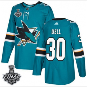 Pánské NHL Sharks Aaron Dell Teal Domácí modrá 2019 Stanley Cup Final Stitched