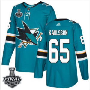 Erik Karlsson Pánské NHL Sharks Teal Domácí modrá 2019 Stanley Cup Final Stitched