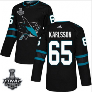 Pánské NHL Sharks 65 Erik Karlsson Černá 2019 Stanley Cup Final Stitched