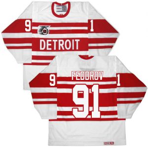 Pánské NHL Detroit Red Wings dresy 91 Sergei Fedorov Authentic Throwback Bílý CCM 75TH