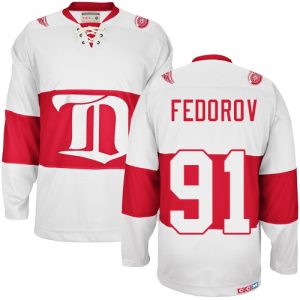 Pánské NHL Detroit Red Wings dresy 91 Sergei Fedorov Authentic Throwback Bílý CCM Winter Classic