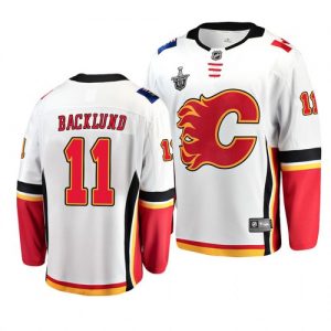Pánské NHL Calgary Flames 2019 Stanley Cup Playoffs Mikael Backlund Bílý hokejové dresy