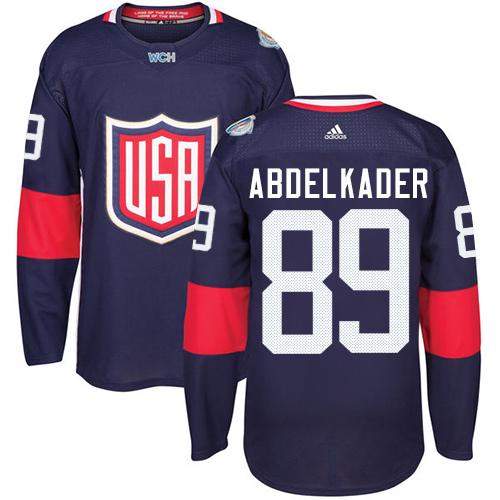 Adidas Team USA dresy 89 Justin Abdelkader Authentic Námořnická modrá Venkovní 2016 World Cup hokejové dresy