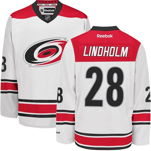 Dámské NHL Carolina Hurricanes dresy 28 Elias Lindholm Authentic Bílý Reebok Venkovní hokejové dresy