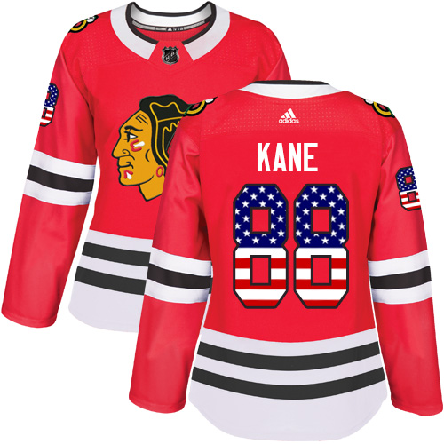 Dámské NHL Chicago Blackhawks dresy 88 Patrick Kane Authentic Červené Adidas USA Flag Fashion
