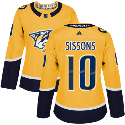 Dámské NHL Nashville Predators dresy 10 Colton Sissons Authentic Zlato Adidas Domácí