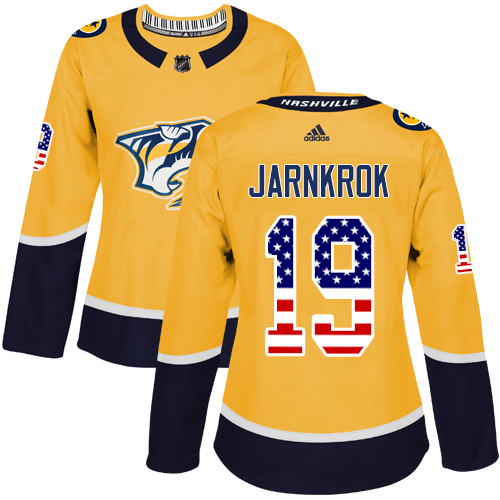 Dámské NHL Nashville Predators dresy 19 Calle Jarnkrok Authentic Zlato Adidas USA Flag Fashion