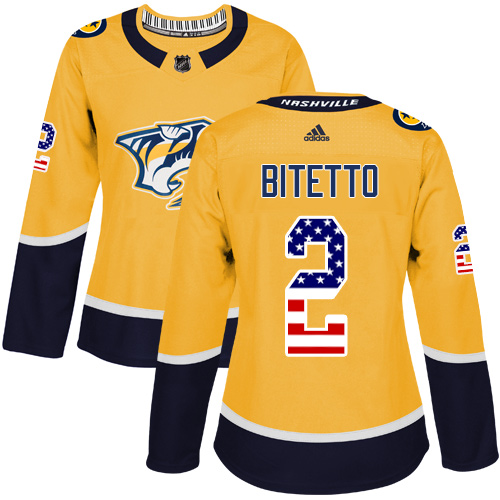Dámské NHL Nashville Predators dresy 2 Anthony Bitetto Authentic Zlato Adidas USA Flag Fashion