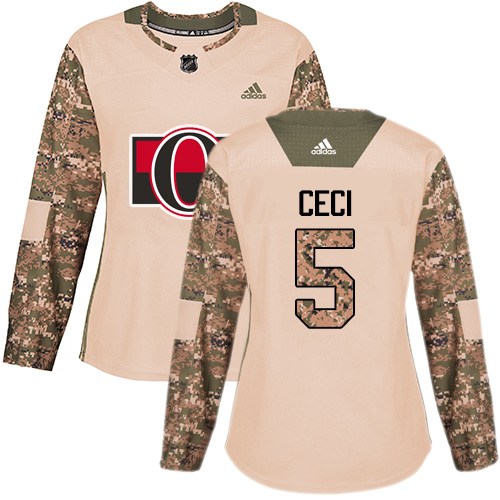 Dámské NHL Ottawa Senators dresy 5 Cody Ceci Authentic Camo Adidas Veterans Day Practice