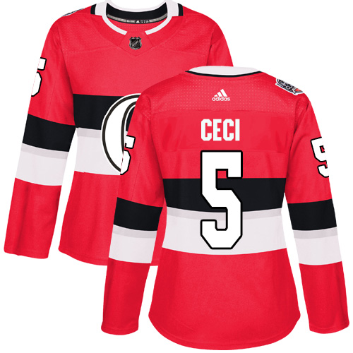 Dámské NHL Ottawa Senators dresy 5 Cody Ceci Authentic Červené Adidas 2017 100 Classic