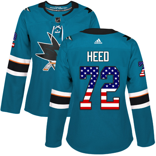 Dámské NHL San Jose Sharks dresy 72 Tim Heed Authentic Teal Zelená Adidas USA Flag Fashion