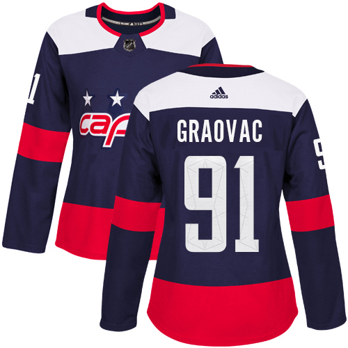 Dámské NHL Washington Capitals dresy 91 Tyler Graovac Authentic Námořnická modrá Adidas 2018 Stadium Series