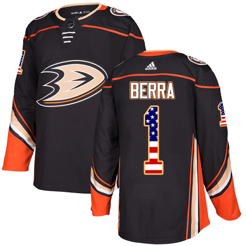 Dětské NHL Anaheim Ducks dresy 1 Reto Berra Authentic Černá Adidas USA Flag Fashion