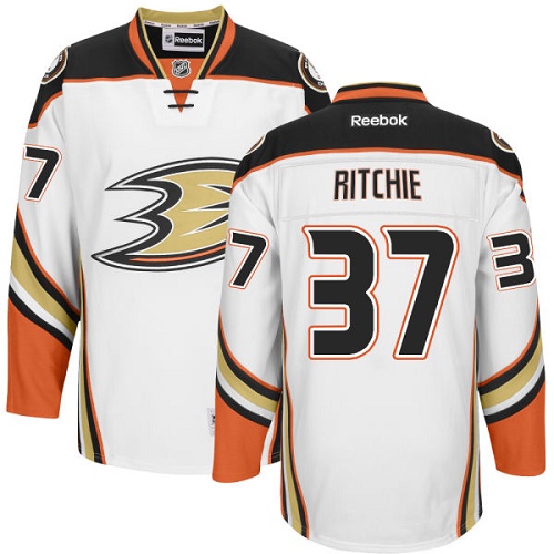 Dětské NHL Anaheim Ducks dresy 37 Nick Ritchie Authentic Bílý Reebok Venkovní hokejové dresy