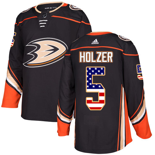 Dětské NHL Anaheim Ducks dresy 5 Korbinian Holzer Authentic Černá Adidas USA Flag Fashion