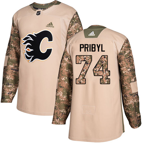 Dětské NHL Calgary Flames dresy Daniel Pribyl 74 Authentic Camo Adidas Veterans Day Practice