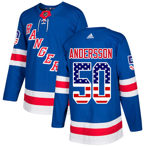 Dětské NHL New York Rangers dresy 50 Lias Andersson Authentic královská modrá Adidas USA Flag Fashion