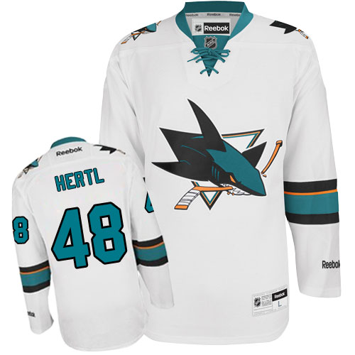Dětské NHL San Jose Sharks dresy 48 Tomas Hertl Authentic Bílý Reebok Venkovní hokejové dresy