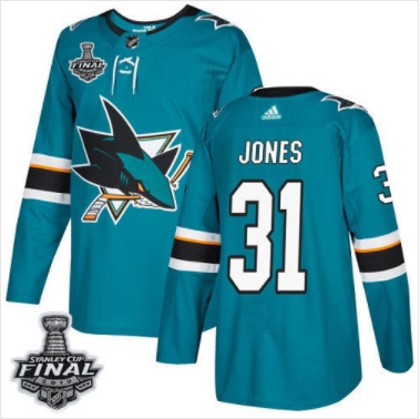 Martin Jones Pánské NHL Sharks Teal Domácí modrá 2019 Stanley Cup Final Stitched