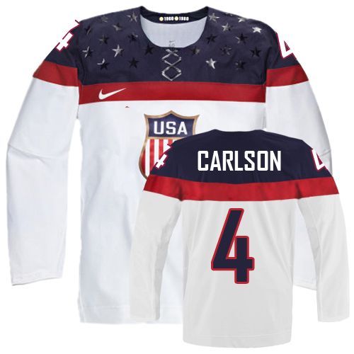 Olympic John Carlson Authentic Bílý Nike Team USA dresy 4 Domácí 2014 hokejové dresy